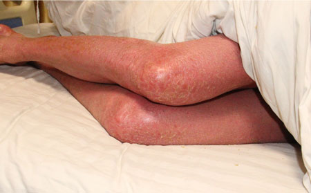 2、皮损面积的增加容易引起感染:红皮病型牛皮癣是比较严重的一种,患者全身皮肤出现弥漫性潮红或暗红、肿胀或伴有渗出,表面覆有大量麸皮样鳞屑。患者伴有头痛、发热、畏寒等全身不适。由于皮损面积大,细菌易于侵入,容易导致感染。